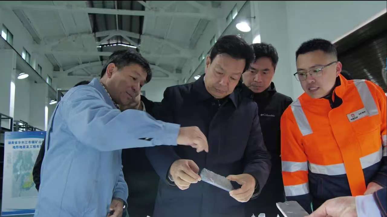 ????陳得信先后來到錫礦山明豎井工程項(xiàng)目建設(shè)現(xiàn)場(chǎng)、南礦二直井、南礦指揮中心、飛水巖出礦口、采選廠巖芯庫(kù)、采選廠選礦車間、銻冶煉廠、錫礦山展覽館、精細(xì)冶金廠等地調(diào)研,詳細(xì)了解企業(yè)生產(chǎn)經(jīng)營(yíng)、安全環(huán)保、資源接續(xù)、科技創(chuàng)新等情況。一路上,陳得信與一線干部職工親切交流,了解工作生活狀況,傾聽困難需求,現(xiàn)場(chǎng)分析百年老礦企發(fā)展的重點(diǎn)難點(diǎn)問題并研究解決方案,對(duì)錫礦山公司取得的經(jīng)營(yíng)業(yè)績(jī)和干部員工蓬勃向上的精神風(fēng)貌、攻堅(jiān)克難的工作作風(fēng)給予充分肯定,并代表中國(guó)五礦黨組向錫礦山干部職工、離退休人員及家屬表示親切慰問。