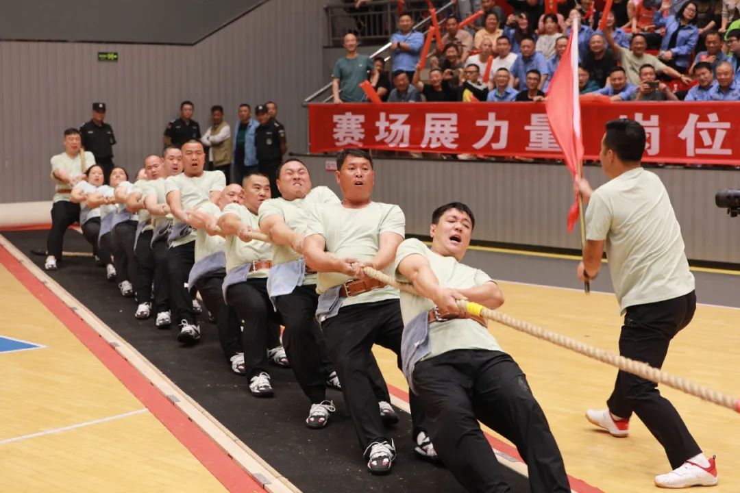 A組生產隊與老牌勁旅株冶生產隊的激情碰撞更是撼動全場。雙方鏖戰(zhàn)至第三輪決勝局,隊員面部血管暴起如盤山鐵軌,發(fā)力隆起的肌肉讓寬松的運動服如同緊身衣,雙腳發(fā)力將賽道磨得吱呀作響。排頭的謝志軍,面對對手的發(fā)力如同整支隊伍的“定海神針”始終穩(wěn)穩(wěn)地釘在最前方;隊尾“錨手”年輕小將王浩丹,如“寒風雪松”以雙腳為根,釘緊賽道,拉緊尾繩寸步不讓,當最后一厘米紅線劃過勝利標線,12人的隊伍全身脫力,卻用顫抖的手臂為彼此豎起大拇指。??